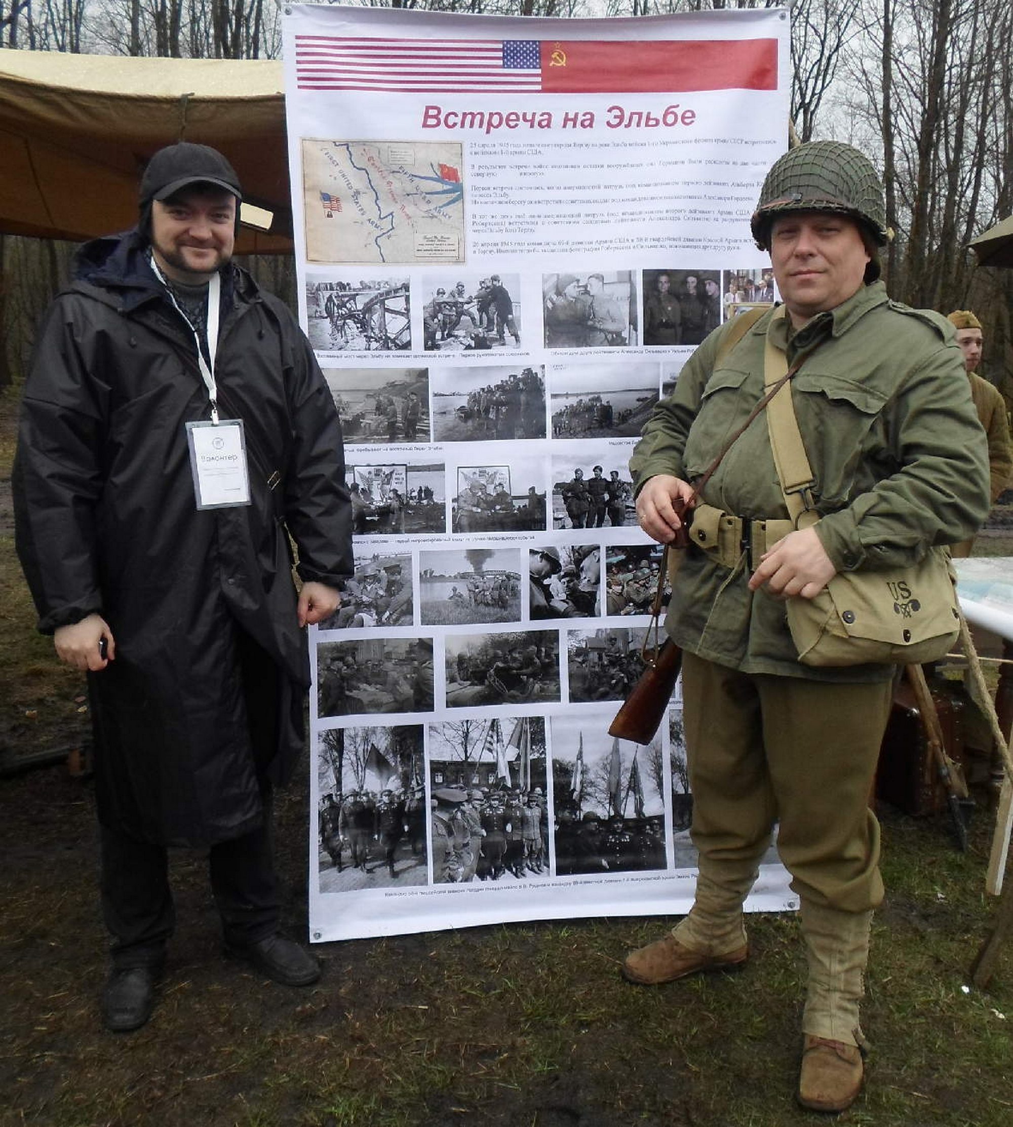 Николай Кицеров (четвертый справа) во время проведения военно-исторической реконструкции ко Дню освобождения Медвежьегорска, Республика Карелия, 2017 год